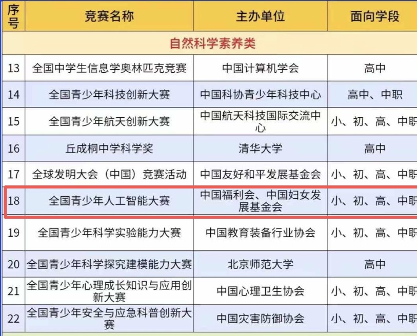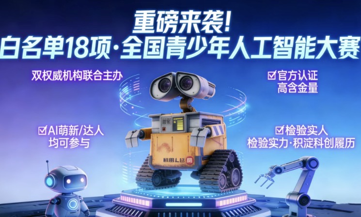 由中国福利会、中国妇女发展基金会联合主办的教育部白名单第18项全国青少年人工智能大赛,报名通道即将开启!作为官方认证的高含金量赛事,这是检验AI学习成果、积累科创履历的优质平台,新手小白与资深玩家都别错过。